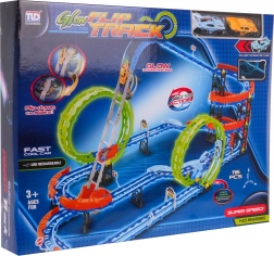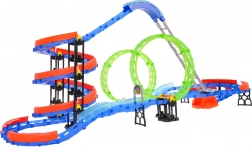 Questo colorato set da corsa offre ai bambini un divertimento dinamico con salite ripide, doppio loop a 360° e parapetti di sicurezza nelle curve. Grazie agli elementi fluorescenti, la pista brilla al buio rendendo la guida ancora più divertente. Due leggere macchinine da corsa con illuminazione LED sono alimentate da una batteria integrata da 3,7 V e si ricaricano tramite USB.