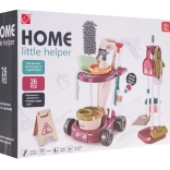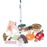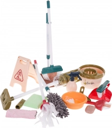 Il set di pulizia per bambini include strumenti come mocio, spazzola, scope e un piccolo aspirapolvere che imitano gli attrezzi reali e rendono il gioco più realistico.