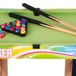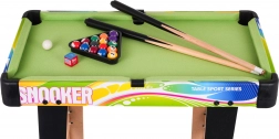 Questo tavolo compatto è progettato per adattarsi facilmente a qualsiasi tavolo o pavimento. Ha una struttura solida ed è dotato di tutto il necessario per giocare subito. I giocatori apprezzeranno dettagli come le buche ai bordi del tavolo, in cui finiscono le palle.