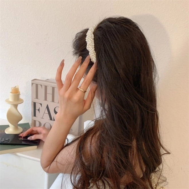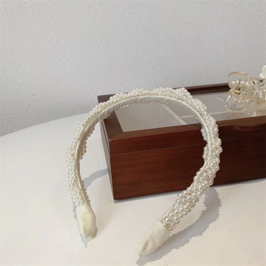 Fascia per capelli con perle, larga