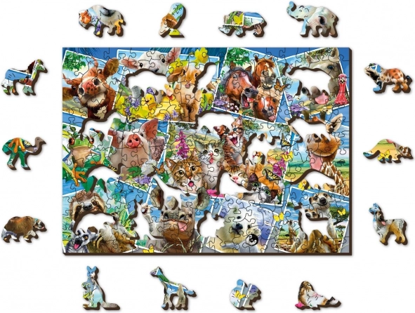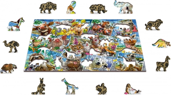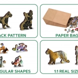 I puzzle in legno WOODEN CITY con il tema “Cartoline degli animali” offrono un’esperienza di composizione unica. Grazie alla realizzazione bifacciale puoi scegliere tra il montaggio secondo l’immagine sul lato frontale o secondo le forme sul lato posteriore con motivo ripetuto. I dettagli evidenziati al laser conferiscono alle singole tessere un aspetto suggestivo e alcune di esse – a forma di animali, edifici o oggetti – possono stare da sole come piccole figurine.