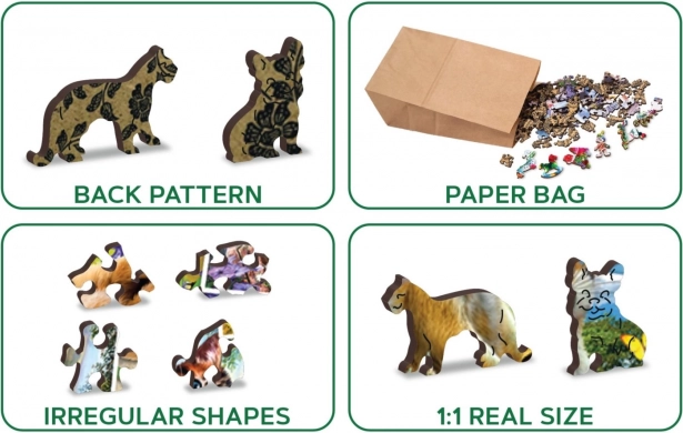 Realizzati in robusto pannello HDF spesso 3–4 mm, assicurano resistenza e bordi lisci senza schegge. Il puzzle presenta una difficoltà elevata con un numero inferiore di pezzi, qualità che apprezzeranno sia i principianti sia i più esperti in cerca di una sfida. Nella confezione trovi un modello separato per un montaggio agevole e l’imballaggio ecologico senza plastica farà felici tutti coloro che tengono alla sostenibilità.