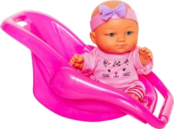Seggiolino/culla rosa in plastica con manico integrato per trasportare la bambola in sicurezza in casa e all’aperto. Ideale per un gioco di cura realistico.