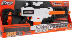 Il blaster Fast Pioneer nei colori bianco‑arancione‑nero è ideale per battaglie in casa e all’aperto. Il meccanismo semi‑automatico a molla assicura tiro rapido e fluido a colpo singolo. Basta caricare il caricatore, tenere premuto il pulsante di alimentazione, mirare e premere il grilletto.