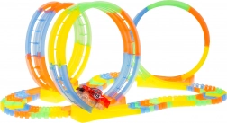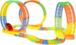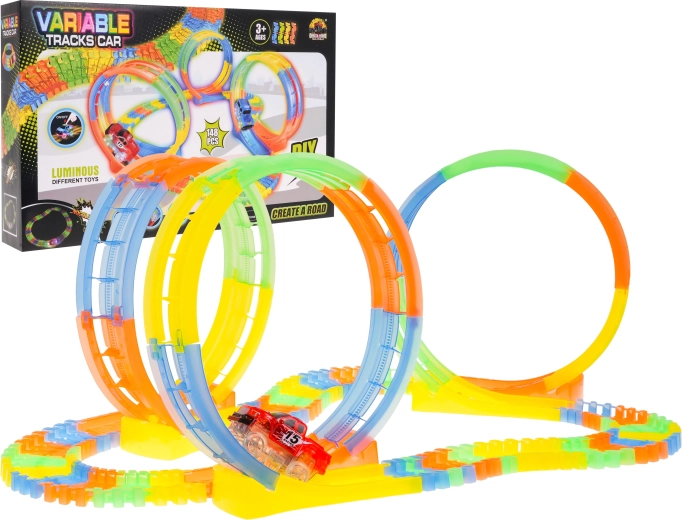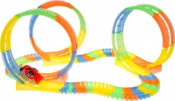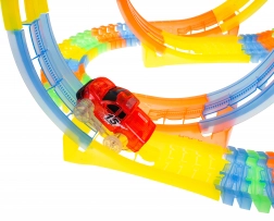 Pista luminosa al buio con 3 loop e un'auto inclusa nel set, adatta ai bambini dai 3 anni. Il set è composto da 148 elementi. Include tratti rettilinei e loop in cui l'auto compie rotazioni di 360 gradi. Le piste sono fluorescenti e brillano al buio. Il veicolo incluso ha illuminazione LED; la guida al buio crea un effetto sorprendente. L'auto è alimentata da 2 batterie AA (non incluse). Per avviare l'auto, basta premere il pulsante sul tetto. La lunghezza totale della pista è fino a 468 cm. Che la gara abbia inizio. |
