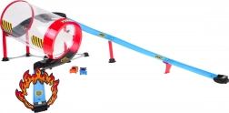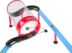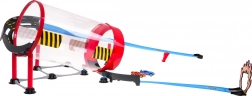 Il tubo trasparente permette di seguire la corsa lungo l’intero loop. Le macchinine sfrecciano ad alta velocità ed eseguono un impressionante giro della morte senza bisogno di batterie.