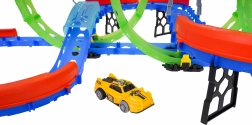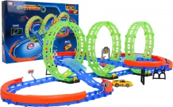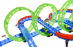 Costruisci il tuo circuito con tre grandi loop e goditi una corsa emozionante con la macchinina a LED. Grazie agli elementi fluorescenti, la pista brilla al buio, rendendo le gare spettacolari anche di sera. La struttura stabile, le barriere protettive e i tratti vari assicurano passaggi fluidi anche ad alta velocità.
