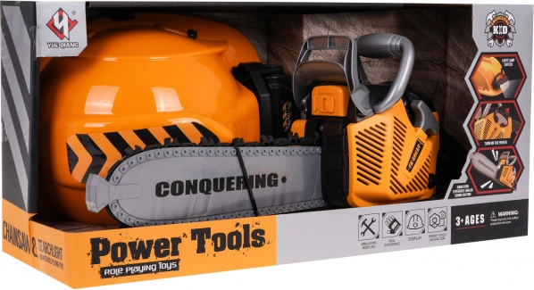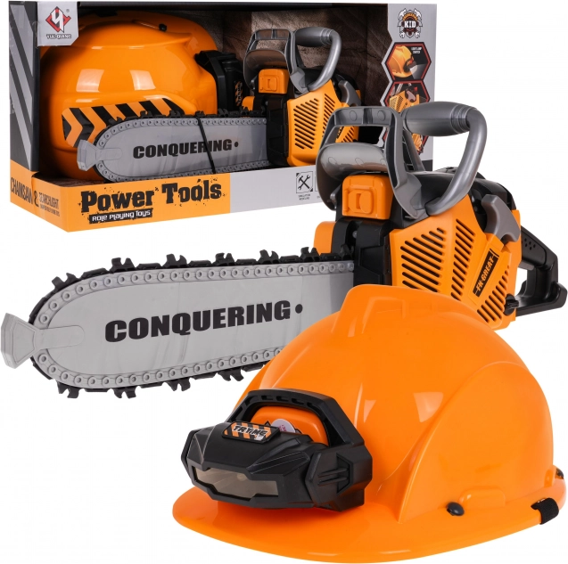 Set interattivo di motosega con effetti sonori e casco con torcia, destinato a bambini dai 3 anni in su. La motosega è completamente sicura per i bambini. È realizzata in plastica di altissima qualità e non presenta spigoli vivi. La catena è in gomma. Avvii la motosega tirando la cordicella di avviamento, quindi sentirai il suono del motore che parte. Per avviare la catena, premi e tieni premuto il pulsante inferiore sull’impugnatura. La catena inizierà a ruotare ed emettere il suono di taglio. Il set include un casco con luce regolabile e elastico sottogola. La motosega è alimentata da 3 batterie AAA 1,5V, batterie non incluse. Il casco è alimentato da 3 batterie tipo AG13, batterie incluse. Funzioni del set: - effetti sonori (avviamento del motore, suoni di taglio), - effetti luminosi: luce sul casco, LED sul frontale della motosega, - catena in gomma rotante. | |