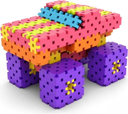 Un’enorme quantità di elementi identici in colori variopinti consente di creare grandi strutture, condividere i pezzi in gruppo e sviluppare la fantasia senza restrizioni.