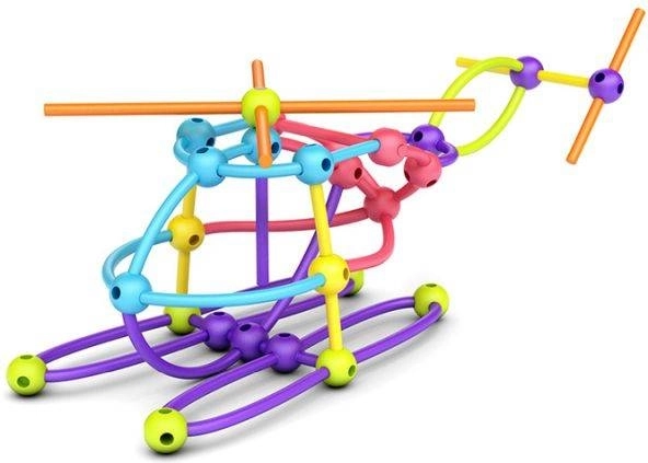 Le aste elastiche e le sfere con sei fori consentono di costruire strutture 3D stabili – dalle auto ai razzi fino agli elicotteri.
