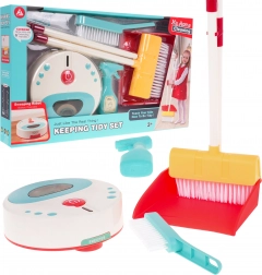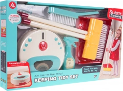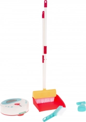 - Robot aspirapolvere, paletta con scopa, spazzola, finta bottiglia di detergente