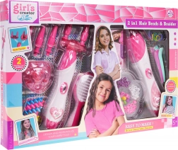 - macchina per intrecciare i capelli ca. 26,5 cm x 7,5 cm x 7,5 cm, .- applicatore di perline per capelli ca. 26 cm x 5,5 cm x 5 cm, .- scatolina per perline ca. 11 cm x 11 cm x 2 cm, .- perlina ca. 0,5 cm x 0,8 cm, .- spazzola per capelli ca. 14,5 cm x 6 cm x 2,5 cm, .- molla per capelli ca. 4,5 cm x 1 cm, .- elastico per capelli ca. 9,5 cm x 1,3 cm x 2 cm, .- confezione ca. 44,5 cm x 30,8 cm x 5 cm, . |