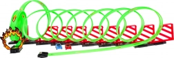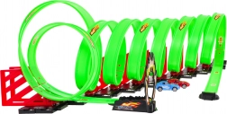 Crea il tuo mondo di corse. Il set include 36 pezzi per montare facilmente una pista con diversi loop, rettilinei e un salto attraverso il cerchio di fuoco. Grazie alla trazione pull-back basta tirare la macchinina indietro e rilasciarla: partirà ad alta velocità, affronterà looping a 360° e passaggi dinamici.