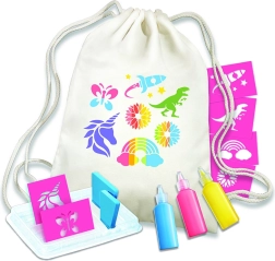 Con questo set creativo 4M, i bambini decoreranno il proprio zaino con chiusura a coulisse trasformandolo in un accessorio di moda unico. L’applicazione è semplice, sicura e, grazie agli stencil e ai colori per tessuti inclusi, adatta anche ai principianti. Ideale come regalo per piccoli artisti.