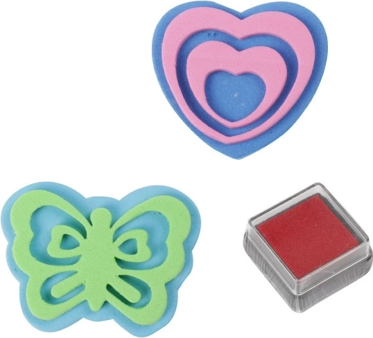 Leggeri timbri in spugna e un tampone d’inchiostro rosso ampliano le possibilità di decorazione. Perfetti per carta e progetti domestici dei piccoli creatori.