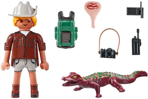 Entrate nell’avventura con la mini-figura dell’esploratore, dotata di cappello, zaino, ricetrasmittente e fotocamera. Il giovane caimano aggiunge autenticità al gioco e incoraggia l’interesse per la natura. Il set è realizzato in plastica di qualità ed è adatto ai bambini dai 4 ai 10 anni.