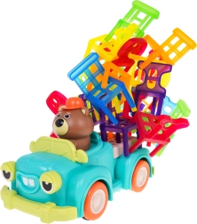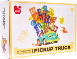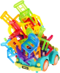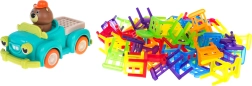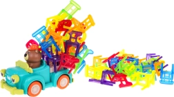 Il gioco di abilità Sedie pieghevoli e auto è ideale per bambini dai 3 anni in su. Consiste di 48 sedie colorate di diverse forme e di un'auto che si muove in cerchio. Il tuo compito è costruire una torre di sedie sull'auto in movimento. Questo compito migliora la coordinazione occhi-mano e aumenta la precisione. L'auto può cambiare il diametro del movimento circolare tra 40 cm e 120 cm con la rotella situata nella parte inferiore del veicolo.