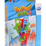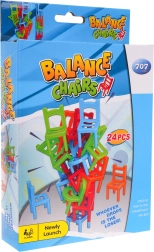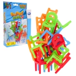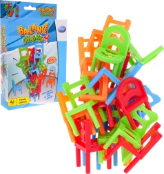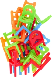Il gioco viene fornito con 24 piccole sedie in 4 colori (blu, arancione, verde, rosso) e 6 forme diverse, permettendo ampie variazioni di costruzione e strategia. Costruisci la torre più alta e goditi momenti di risate e tensione.