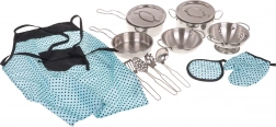 Questo set da cucina per bambini ben realizzato è ideale per piccoli chef. Il metallo resistente assicura lunga durata e un aspetto realistico che i bambini adorano. Oltre agli utensili, il set include anche accessori da cucina pratici necessari per ogni cucina dei bambini.