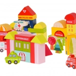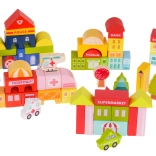 Vi presentiamo i blocchi di legno colorati per costruire la propria piccola città, adatti per bambini dai tre anni in su. Questo set non è solo divertente, ma anche sicuro ed educativo. Grazie a ciò, i bambini impareranno a riconoscere forme e figure geometriche e stimolerà la loro fantasia e pensiero logico.