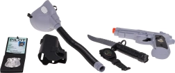 Il set include una maschera con tubo respiratorio, pistola giocattolo, coltello e altri accessori realistici per giochi avventurosi.