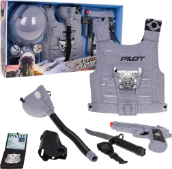 Questo set per piccolo pilota è il giocattolo ideale per i bambini che amano esplorare nuovi mondi e provare il ruolo del pilota. Il set include un casco con occhiali protettivi, un giubbotto imbottito con cintura elastica, una maschera con possibilità di fissaggio e una pistola giocattolo interattiva che emette suoni di sparo. Garantisce ore infinite di divertimento e allo stesso tempo stimola l'immaginazione.