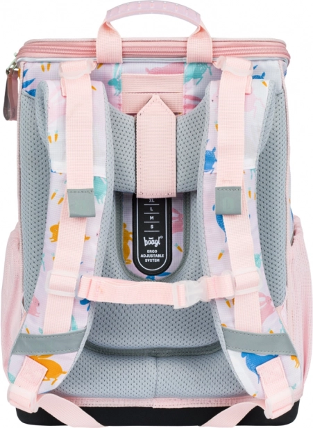 Il set BAAGL Zippy Bunny unisce un design giocoso all’attenzione per il trasporto salutare e l’ordine. La cartella con ERGO ADJUSTABLE SYSTEM scorrevole si adatta alla crescita del bambino, ha schienale rinforzato ed ergonomico, spallacci completamente regolabili e una struttura leggera e stabile. Il nuovo sistema di apertura a ribalta facilita l’accesso ai libri direttamente dal banco.