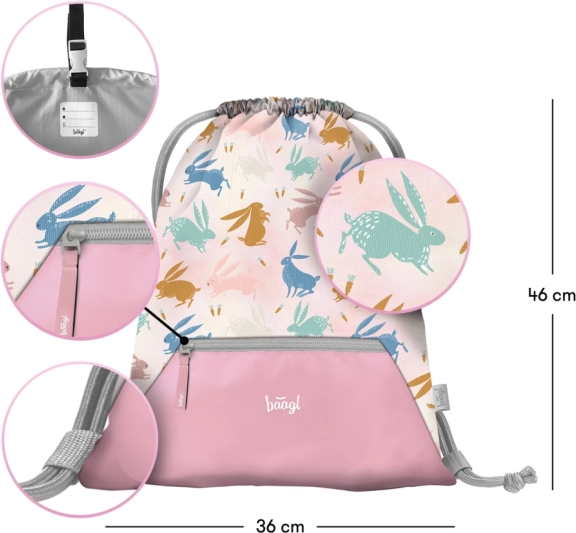 Il grazioso ed ergonomico set scolastico BAAGL Zippy Bunny per la scuola primaria include una cartella leggera con sistema dorsale regolabile, un morbido astuccio a un scomparto e una sacca pratica con tasca. Grazie agli elementi riflettenti, ai materiali impermeabili e a un’organizzazione studiata, è la scelta ideale per un trasporto quotidiano sicuro e confortevole.