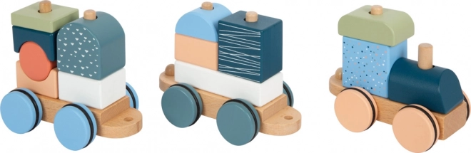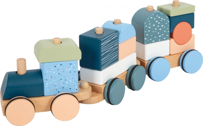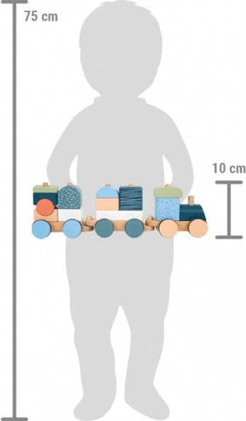 Il trenino è anche un puzzle impilabile – 13 pezzi si possono infilare, combinare e usare anche separatamente come blocchi da costruzione.