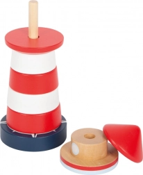 Questa torre impilabile in legno, ispirata al classico faro bianco e rosso, offre ai bambini dai 1 anni in su il piacere della scoperta e dell’impilamento. Sette anelli colorati si impilano su una base stabile con piolo flessibile, che aumenta la sicurezza durante il gioco. L’ordinamento per dimensione favorisce il pensiero logico e la pazienza.