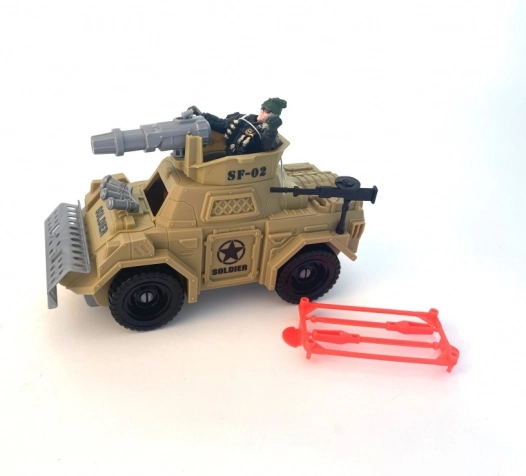 - Contenuto della confezione: veicolo militare, figurina di soldato, accessori.