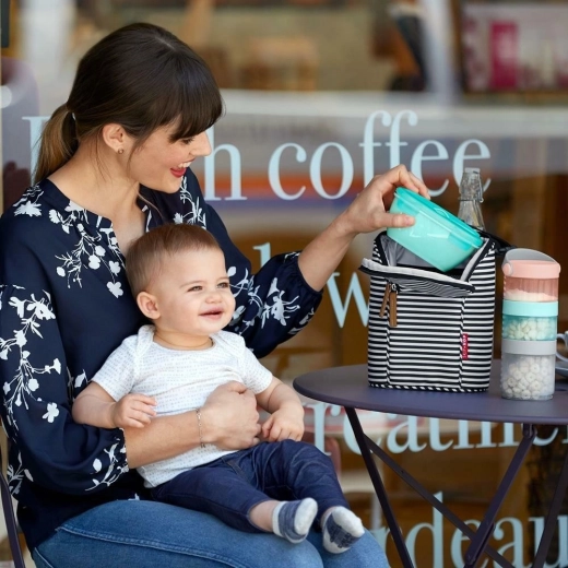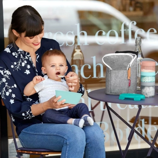 I genitori apprezzeranno il design compatto, con tutto riposto ordinatamente e pronto all'uso. Il cucchiaino ergonomico permette di nutrire comodamente il tuo bambino, mentre il coperchio protegge da eventuali fuoriuscite accidentali. Skip Hop si prende cura di comfort e sicurezza in ogni momento.