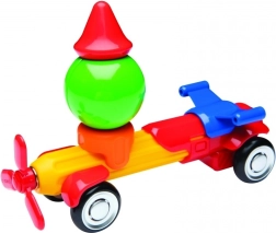 Il set include forme con cui è facile assemblare semplici modelli di veicoli – dalle auto agli aeroplani. Ideale per i primi successi da piccoli costruttori.