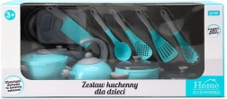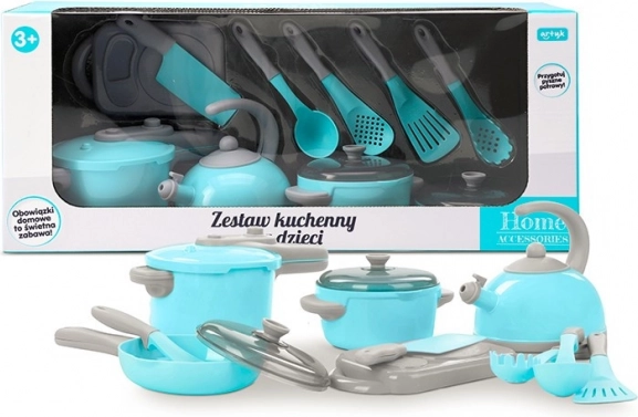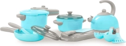 Set da cucina per bambini 11 pz offre ai piccoli chef tutto ciò di cui hanno bisogno per iniziare a “cucinare” con la fantasia. Include pentola con coperchio, padella, bollitore con fischietto, utensili da cucina e altri accessori in una combinazione moderna turchese-grigio. Dai 3 anni, realizzato in plastica sicura e facilmente lavabile.