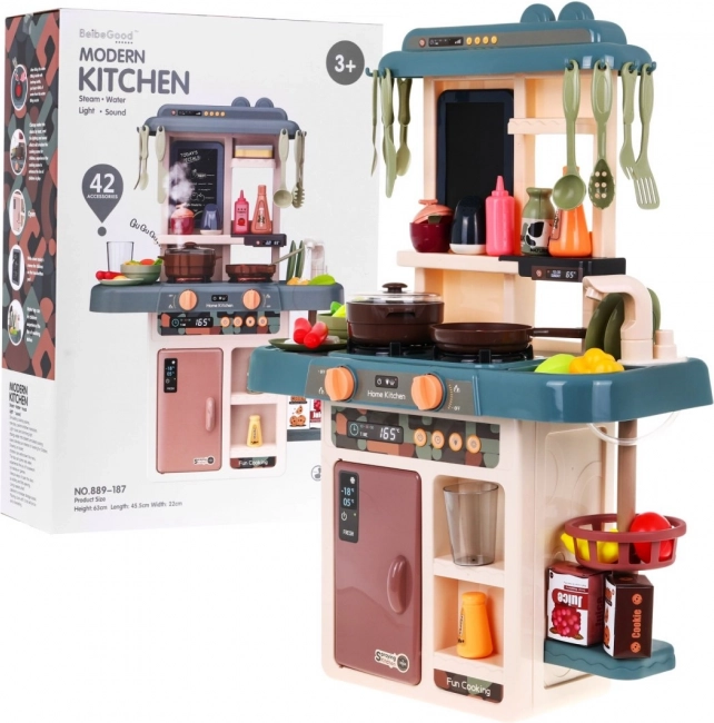 Questa cucina è un compagno irresistibile per ogni piccolo chef, grazie alle funzioni realistiche. Ha piani cottura retroilluminati con suoni realistici di frittura e cottura, un rubinetto con acqua vera e la funzione vapore, garantendo un'esperienza di gioco autentica.