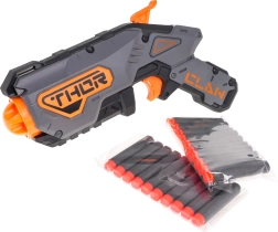 Il blaster Blaze Storm con meccanismo a molla garantisce un funzionamento semplice senza batterie. Basta solo inserire il proiettile nella parte anteriore, attivare la leva gialla e premere il grilletto. I morbidi proiettili in schiuma con punta in gomma offrono divertimento sicuro per i bambini.