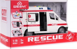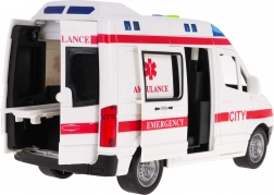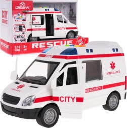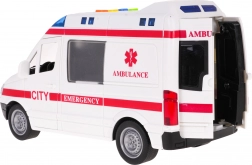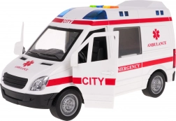 Ambulanza interattiva in scala 1:16 con effetti sonori e luminosi realistici, ideale come giocattolo per bambini dai 3 anni in su. Questo modello è dotato di parti mobili, come le porte laterali e posteriori apribili. L’ambulanza può muoversi avanti e indietro grazie alla trazione sulle ruote posteriori e gli pneumatici in gomma assicurano una migliore aderenza.