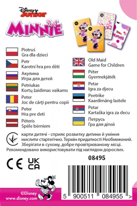 Il popolare gioco di carte per bambini Asino Nero con i motivi di MINNIE del marchio TREFL farà felici i piccoli giocatori con regole semplici e una grafica allegra. L’obiettivo è creare coppie uguali evitando al tempo stesso la carta dell’Asino Nero. Ideale per i viaggi, l’asilo e il gioco in famiglia.