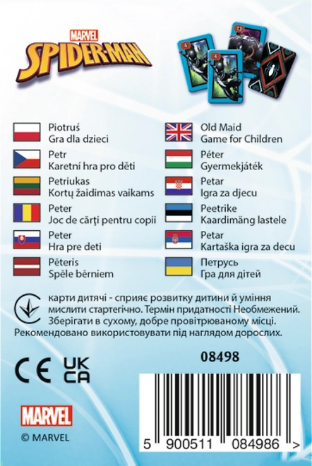 Cerca le coppie corrispondenti con gli eroi del mondo di SPIDERMAN e libera tutte le carte prima degli altri. Il mazzo contiene 25 carte (12 coppie + 1 Jolly “Asino”), quindi ogni turno ti regalerà tanta tensione e risate. Il gioco ha turni rapidi, ideale per brevi pause o sessioni più lunghe con la famiglia.