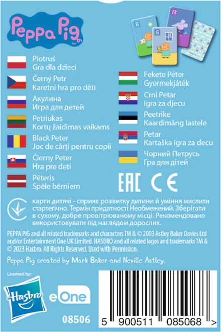 Divertente gioco di carte Black Peter con tema PEPPA PIG per bambini dai 4 anni. Sviluppa concentrazione, prontezza e abilità sociali. La confezione include 25 carte con personaggi amatissimi e regole semplici che garantiscono una partita rapida e avvincente fino a 5 giocatori.