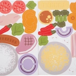 Inclusi padella, pentola con coperchio, pinze, spatola, strofinaccio da cucina e 2 fogli di cartone con alimenti. Nulla limita la creatività dei piccoli chef.