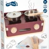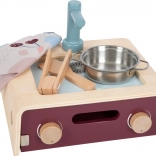 Questo fornello da campeggio multifunzione in legno SMALL FOOT è progettato per offrire il massimo divertimento e favorire lo sviluppo delle abilità. I bambini possono alternare cottura, cottura al forno, grigliatura e lavaggio grazie alla struttura bifacciale, in cui la parte superiore e inferiore fungono da fornello o lavello. Il legno di qualità, combinato con metallo e tessuti, garantisce resistenza e lunga durata.