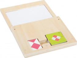 Questo affascinante gioco offre ai bambini un modo divertente e interattivo per imparare a riconoscere e creare figure e forme simmetriche. Posizionando le tessere di legno davanti allo specchio, i bambini creano figure che insieme formano il modello richiesto sulle carte allegate.