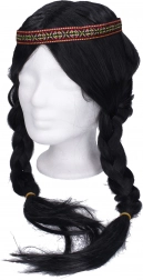 Elegante parrucca nera con trecce intrecciate e fascia, l'accessorio ideale per carnevali, feste in maschera o a tema. Crea un look autentico per il costume indiano e mantiene perfettamente la forma. Adatta ai bambini dai 6 anni. Dona al tuo travestimento un effetto realistico e una trasformazione rapida senza sforzo.