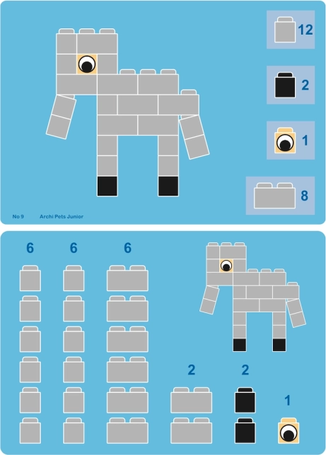 Il set include 12 istruzioni chiare in formato A5. I bambini costruiranno facilmente un leone, una tartaruga, un elefante, un pinguino e altri animali, acquisendo sicurezza per le proprie creazioni.
