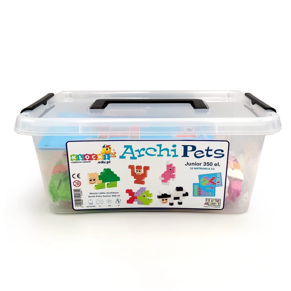 Scopri il mondo degli animali con il set di costruzione Little Architect ArchiPets Junior con 350 pezzi colorati. I bambini possono costruire fino a 12 modelli, dai cuccioli agli abitanti della savana e delle regioni polari, sviluppando creatività, motricità fine e pensiero logico. Include 12 istruzioni chiare in formato A5, compatibilità con altri set e materiali resistenti e sicuri per un divertimento duraturo e significativo.