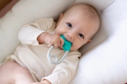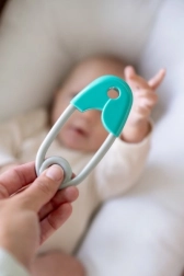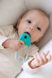 Il sonaglio per bambini spilla è una parte essenziale dello sviluppo di ogni bambino. È progettato per adattarsi perfettamente alle piccole mani, con un design turchese-grigio che stimola la percezione visiva del bambino. Il sonaglio è dotato di piccole palline che, muovendosi, creano un suono lieve che mantiene l'attenzione del bambino e supporta lo sviluppo uditivo.