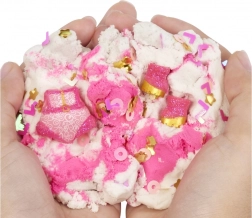La sabbia cinetica rosa e bianca consente ai bambini di creare e modellare forme secondo la loro fantasia. La sabbia contiene anche piccoli elementi decorativi.