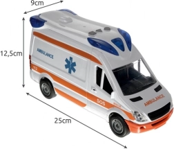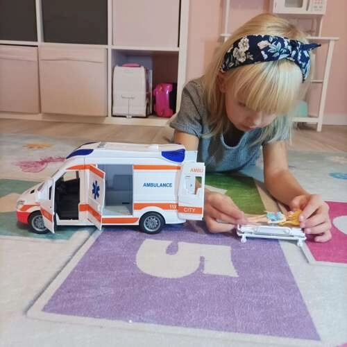 Tre pulsanti sul tetto attivano effetti luminosi e sonori intensi che imitano fedelmente una vera ambulanza. Batterie 2× AA incluse.
