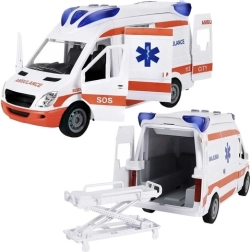 Questa ambulanza in plastica riproduce fedelmente un vero mezzo di soccorso, dalla grafica alle funzioni. I bambini apprezzeranno i tre pulsanti sul tetto per attivare luci e sirene, mentre le porte anteriori, laterali e posteriori apribili permettono di accedere a un interno dettagliato. Inclusa una barella pieghevole ed estraibile per “caricare” facilmente il paziente a bordo.